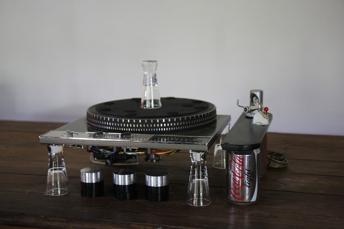 latter is moved by a wheel touching the platter as opposed to the more common belt drive or direct drive where a platter spindle is an extension of a motor axe.