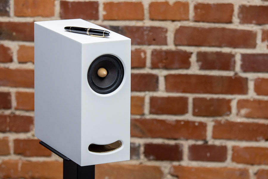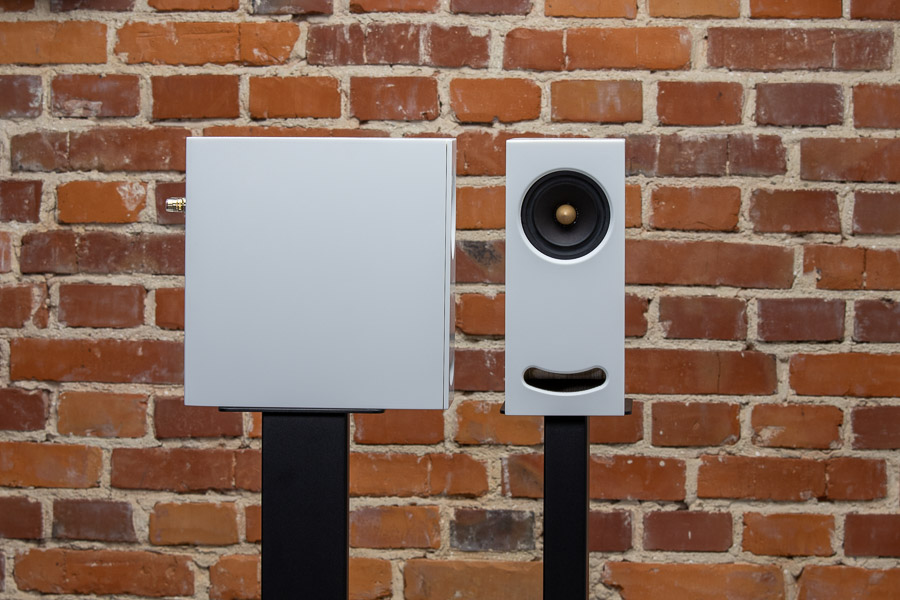 Il s'agit d'une enceinte de bibliothèque de petite taille (31x31x13 cm, 7kg), d'un volume de 6 litres : caisson de construction sandwich à ligne de transmission avec un haut-parleur large bande 4" EMS LB5. La construction en sandwich de l'enceinte signifie qu'elle a un corps interne en bois et un corps externe en pierre acrylique. Cela lui confère d'excellentes propriétés qui minimisent les résonances du caisson.