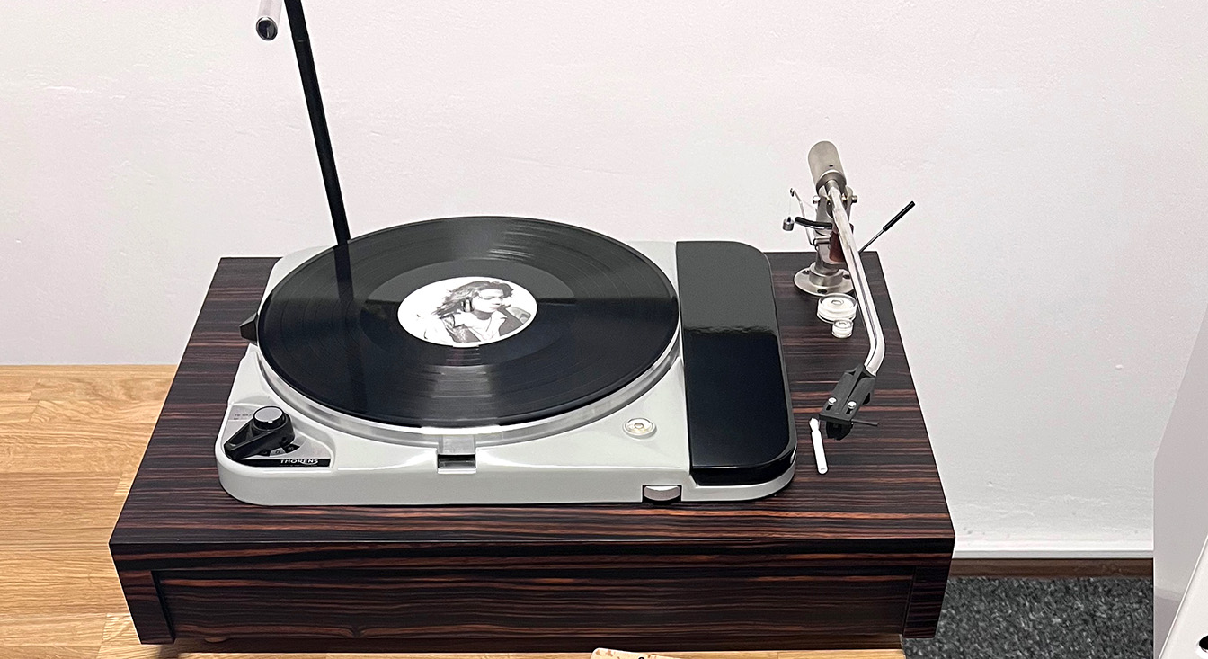 Thorens TD 124 MKii turntable with a twelve-inch Schick tonearm.