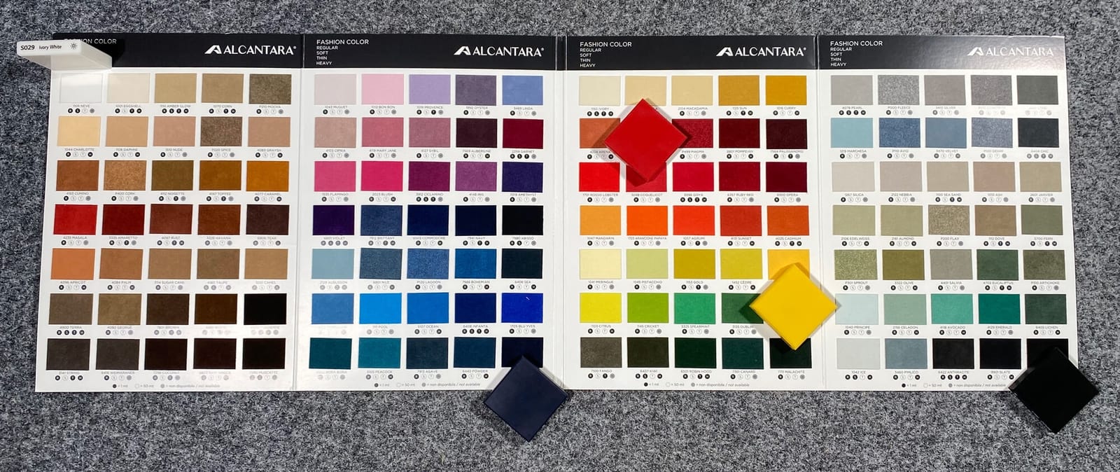 Plywood + Transparent paint + acrylic stone on the sides Alcantara covered plywood + acrylic stone on the sides.Allegra can be finished with paint and with acrylic stone on the sides.Also instead of paint Allegra can be finished with Alcantara. The colors of acrylic stone and Alcantara can be customized accordingly to the available manufacturer output.